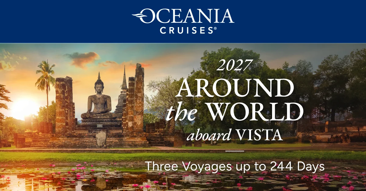 Oceania Vista vypláva z Miami 6. januára 2027. Trasa vedie cez Panamský prieplav, Mexiko, Havaj, Francúzsku Polynéziu, Austráliu, Áziu, Arabský polostrov, Stredomorie a severnú Európu, pričom končí v 5. júla 2027 v anglickom Southamptone.
