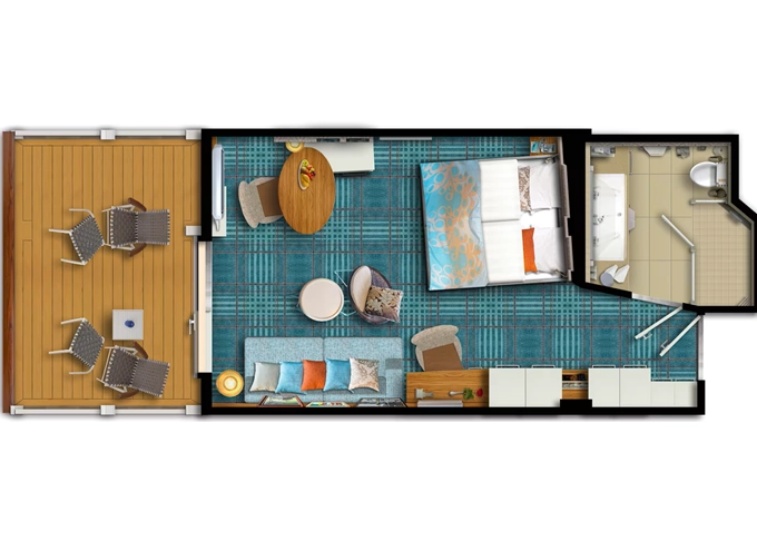 | VEPO - Kajuta s terasou Premium 17 m² + balkón 30 m² s hojdacou sieťou a ležadlami. 7-11. paluba. Max 3 osoby. | 1 898 € 949 € za osobu | ||
