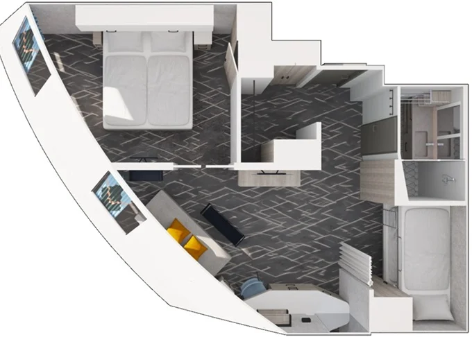 | JBAO - Junior Suite s balkónom 26 m² + balkón 7 m² so stoličkami a podnožkami. 9-14. paluba. Max 4 osoby. Výhody Junior Suite. | 4 538 € 2 269 € za osobu |