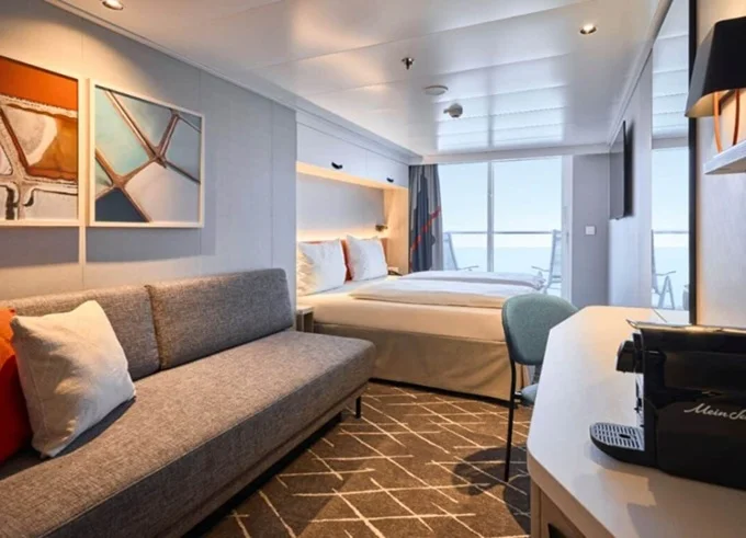 | SKWO - Weitblick Suite 45 m² + balkón 12 m² s hojdacou sieťou. Oddelená spálňa a obývacia časť, šatník. 14. paluba. Max 4 osoby. Výhody Suite. | 5 398 € 5 398 € za osobu |