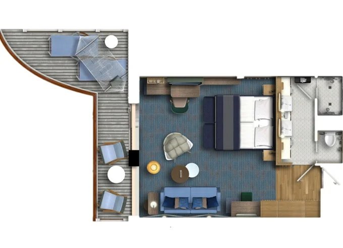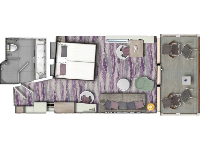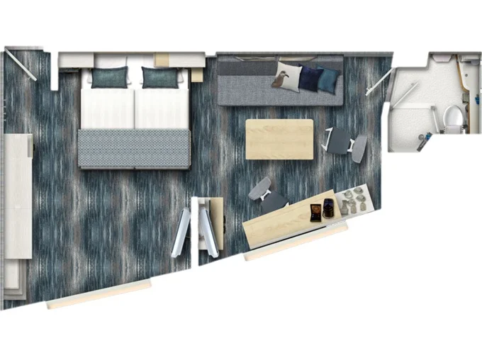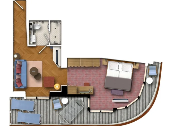| JBAO - Junior Suite s balkónom 26 m² + balkón 7 m² so stolom. 10,11. paluba. Max 4 osoby. Výhody Junior Suite. | 13 098 € 6 549 € za osobu | ||